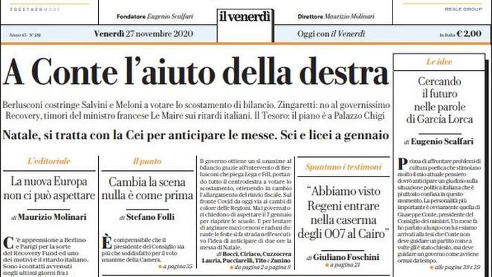 " Mediagol.it vi propone la prima pagina de "La Repubblica" oggi in edicola.