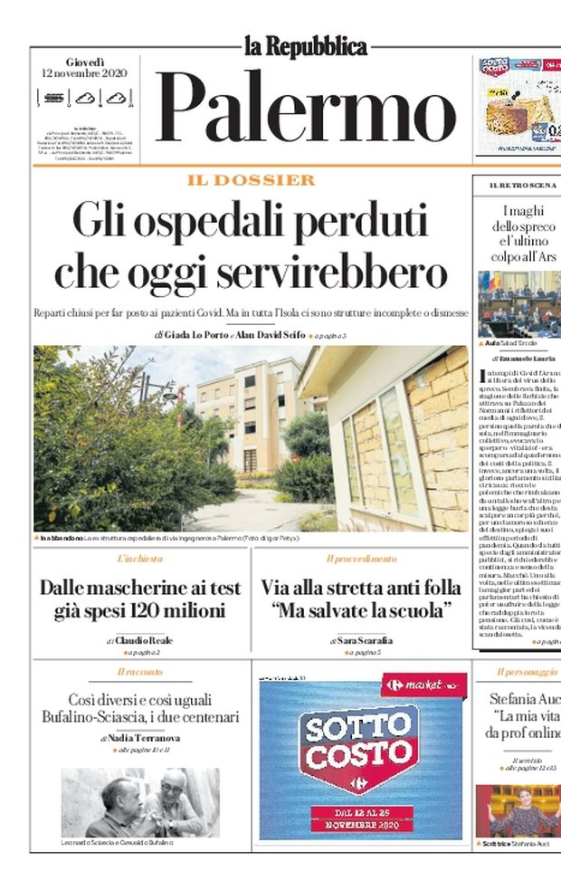 Prima Pagina, La Repubblica – Palermo: “Gli ospedali perduti che oggi servirebbero. Via alla stretta anti folla”
