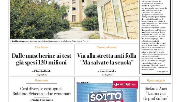 Reparti chiusi per far posto ai pazienti Covid. Ma in tutta l’Isola ci sono strutture incomplete o dismesse. I maghi dello spreco e l’ultimo colpo all’Ars. Dalle mascherine ai test, già spesi 120 milioni. Via alla stretta anti folla: ‘Ma salvate la scuola’”.