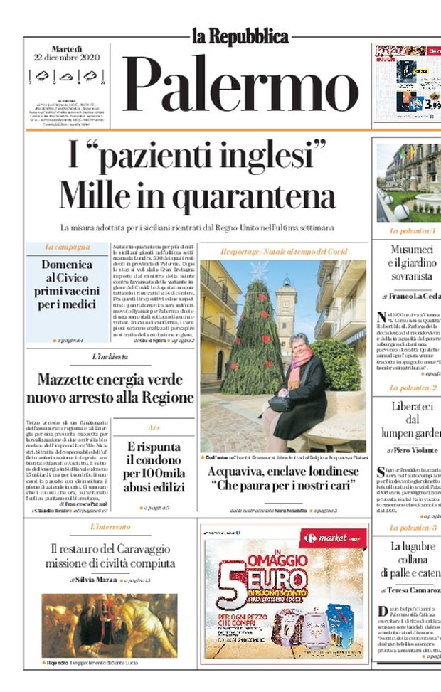 Prima Pagina, La Repubblica-Palermo: “I pazienti inglesi, mille in quarantena. Domenica primi vaccini per i medici”