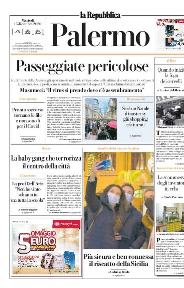 Prima Pagina, La Repubblica-Palermo: “Passeggiate pericolose. Giù shopping e fatturati”