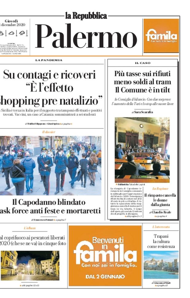 Prima Pagina, La Repubblica-Palermo: “Su contagi e ricoveri. Il Capodanno blindato, task force anti feste”