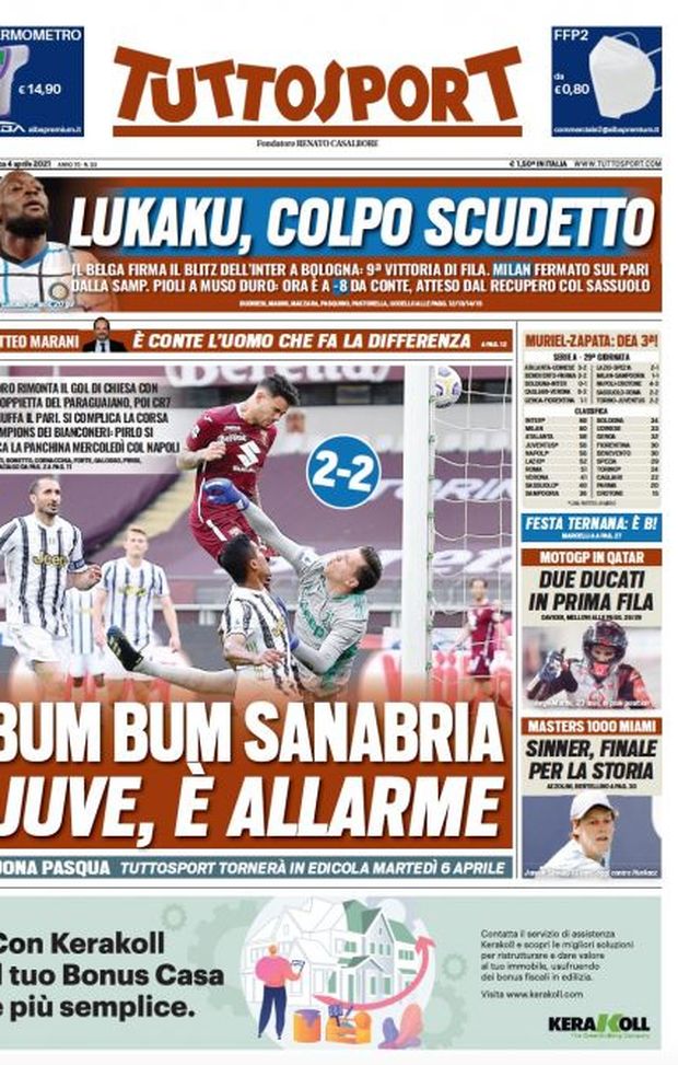Prima Pagina, Tuttosport: “Bum Bum Sanabria. Juve, è allarme. Lukaku, colpo scudetto”