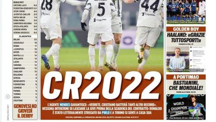 Prima Pagina, Tuttosport: “CR2022, Mendes garantisce. Ibra da scudetto, grande Sassuolo”