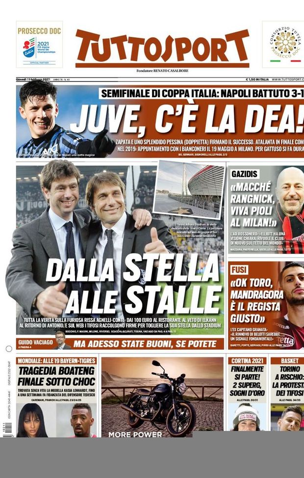 Prima Pagina, Tuttosport: “Dalla stella alle stalle. Juve, c’è la Dea!”