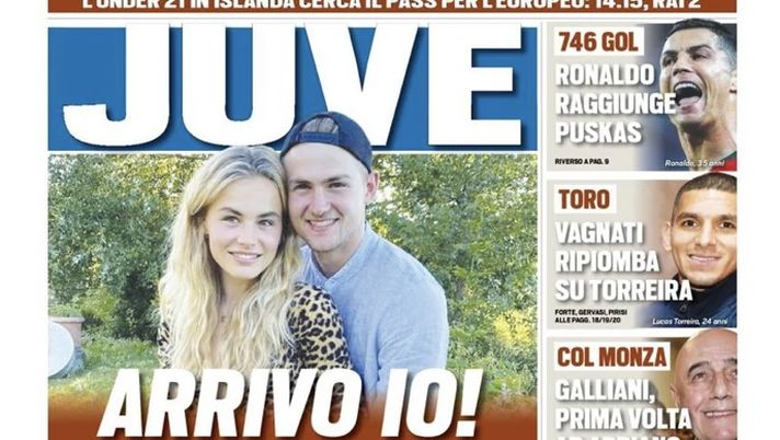 Prima Pagina, Tuttosport: “Juve, arrivo io. De Ligt è pronto. È sempre Italia! Ronaldo raggiunge Puskas”