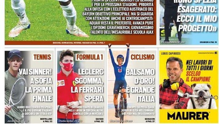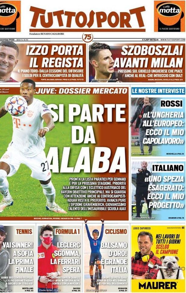 La prima pagina dell’edizione odierna di “Tuttosport” apre così. Pronta la lista Paratici per gennaio e per la prossima stagione. Priorità alla difesa con l'eclettico austriaco obiettivo del Bayern Monaco obiettivo principale. In taglio alto: "Izzo porta il regista. Il piano Toro: dalla cessione del difensore i soldi per il centrocampista di qualità". "Szoboszlai, avanti Milan. Pressing sul gioiello ungherese che piace anche al Real: che intreccio con Diaz!".