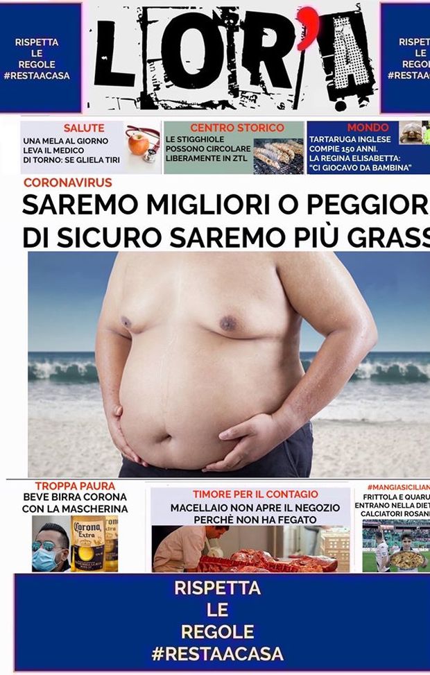 Un bel progetto a cui stanno contribuendo diverse pagine satiriche su Facebook, con l'obiettivo di smorzare la tensione grazie al dono dell'ironia. Tra queste vi è anche "LOR'A quotidiano irriverente", che ogni giorno pubblica la propria "prima pagina" incentrata su quanto accade quotidianamente in Sicilia ed in particolare a Palermo, prendendo in giro personaggi politici, dello spettacolo e dell’attualità.