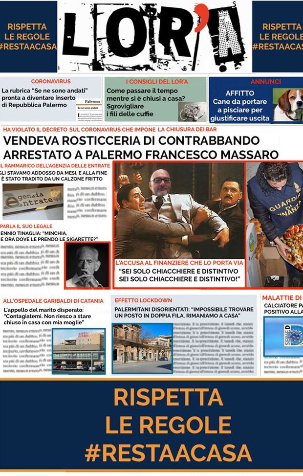 Un'opera svolta egregiamente anche dalle varie pagine satiriche, che stanno cercando di smorzare la tensione grazie al dono dell'ironia. Tra queste vi è ”LOR'A quotidiano irriverente”, che ogni giorno pubblica la propria "prima pagina" incentrata su quanto accade in Sicilia e in particolare a Palermo, prendendo in giro personaggi politici, dello spettacolo e dell’attualità.