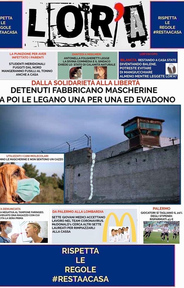 Un lavoro svolto egregiamente anche dal mondo della commedia e della satira, soprattutto sul mondo del web. Tra le tante pagine Facebook che hanno sposato l'iniziativa c’è anche quella satirica de LOR'A che ogni giorno pubblica la propria, finta, prima pagina incentrata su quanto accade in Sicilia e in particolare a Palermo, prendendo in giro personaggi politici, dello spettacolo e dell’attualità.